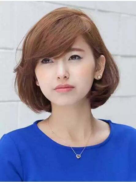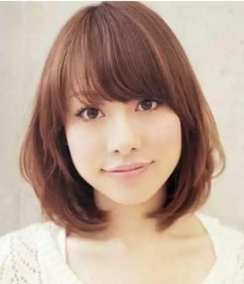 中短长度简约大方,优雅乖巧厚度感的内扣烫发设计,增添了女生的知性美,侧分刘海遮住额头,修饰长脸型。