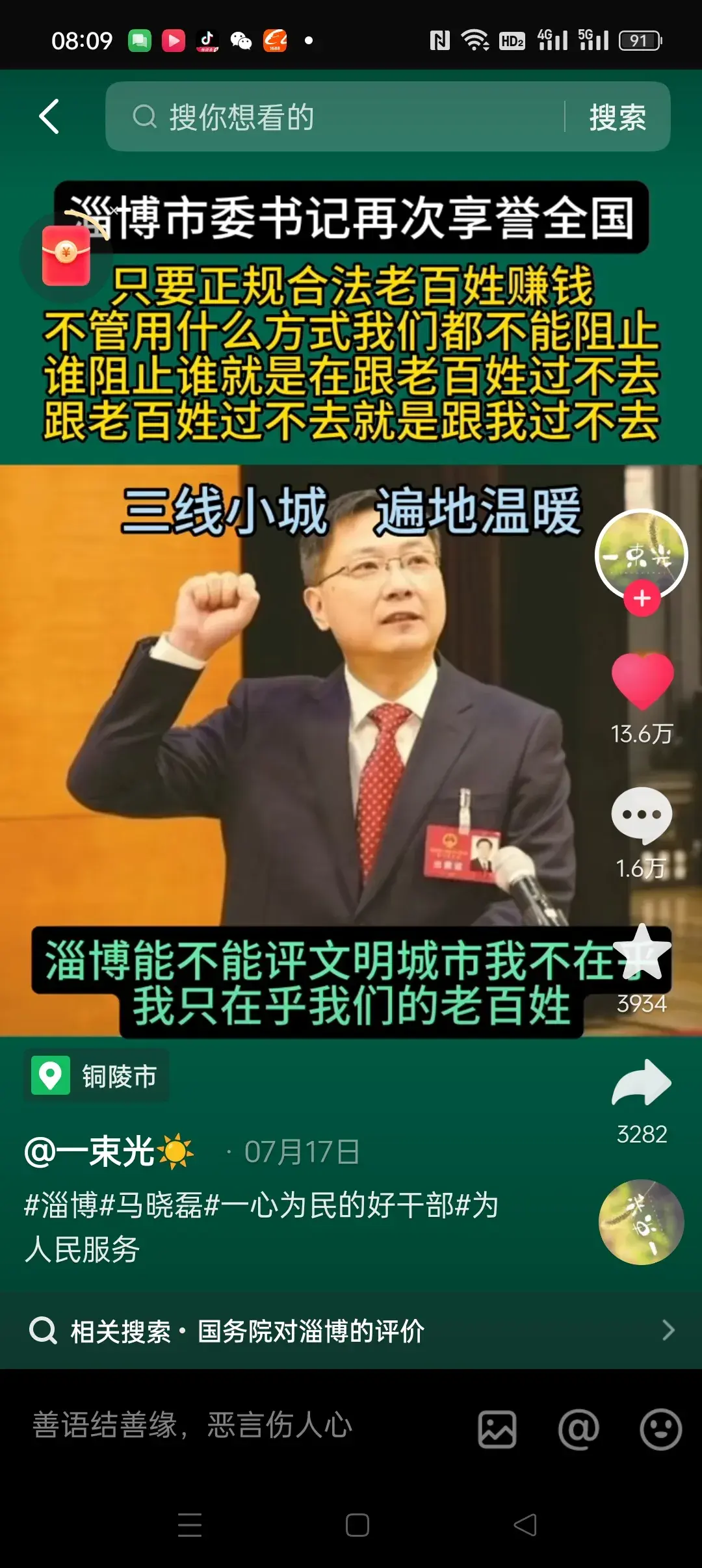 淄博市长马晓磊带领的领导班子,都是人民的功臣,全国人民都爱戴拥护你!全国人民都为淄博点赞!