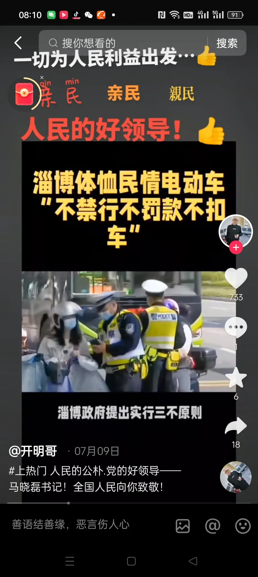 再看看淄博是怎么做的!淄博市长马晓磊说的话:党和国家培养了我们,共产党员必须为人民全心全意为人民服务,我们吃着农民的粮食长大的,我们手中的权利是人民给的,我们打江山守江山是守的是人民的心,我们只有把人民当亲人,人民才会把我们当亲人,我们只有把人民的事放心上,人民才会把我们放心上,如果人民受苦,我们还休闲的坐在舒适的办公大楼里,我们难道心里没有愧吗?扪心自问,我们都为人民都做了些什么?马书记是这么说的。也是这么做的!七月一日是电动车新规实施的日子,全国都在禁行,扣车,罚款的时候,淄博却实行了亲民,爱民政策!不禁行,不扣车,不罚款,还在马路上直接免费上牌,没有头盔的,20元一个的3C头盔直接送!城管不扣车,不罚款还给摊贩帮忙!还有很多很多感人肺腑的事,希望家人们多多举例!