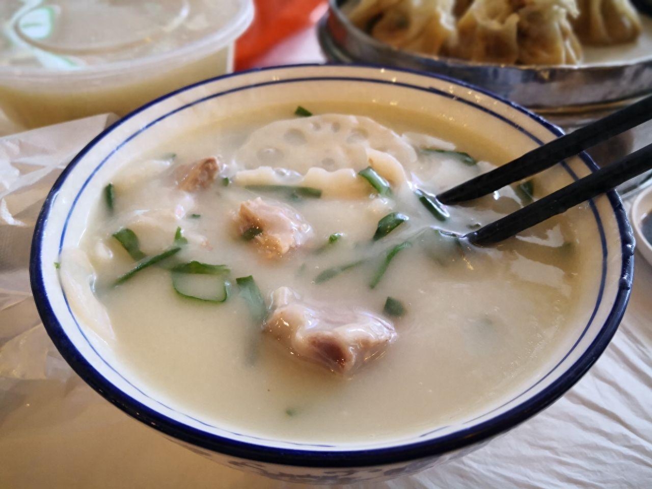 每喝一口头脑,就有一股“暖意”顺着食道蔓延至全身,细细回味,淡淡的黄酒酒香,似药非药,口感饱满甘甜,再拌上咸淡适中的腌韭菜,厚重感十足,尝一口羊肉,品一块山药,食一片莲藕,当回味无穷。