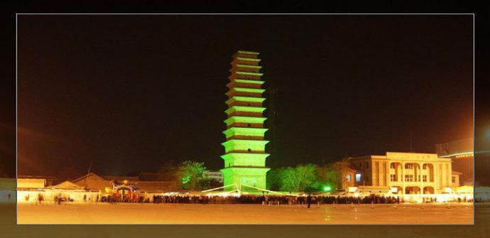 双塔之南寺唐塔,原系慧砌寺舍利塔,为方形四面十级楼阁式砖塔,砖砌单壁中空,高约39米,始建于唐贞观元年;北寺宋塔,位于城内北街崇寿寺旧址内,系密檐式方形砖塔,四面十三级、高约47米,始建于北宋绍圣三年。