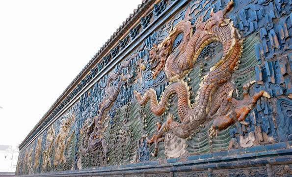 建于明万历四十四年,高约6米,长约17米,为琉璃花砖精砌而成。虽历经风雨洗礼,略显破败,可依然生动而富灵气。六龙壁为陕西省重点文物保护单位。