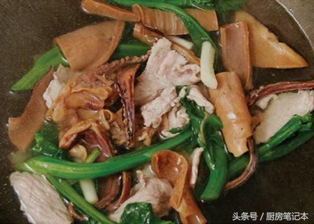 鱿鱼干:150g,猪里脊:50g,菜心:100g