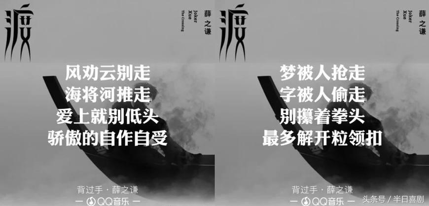 值得一提的是,在经历与李雨桐的情感风波后,薛之谦撤下了原先准备发的几首歌,连续全新创作了《渡》、《别》、《像风一样》、《骆驼》和《背过手》,并且亲自为三首新歌填词填曲,其中的意味不言自明。