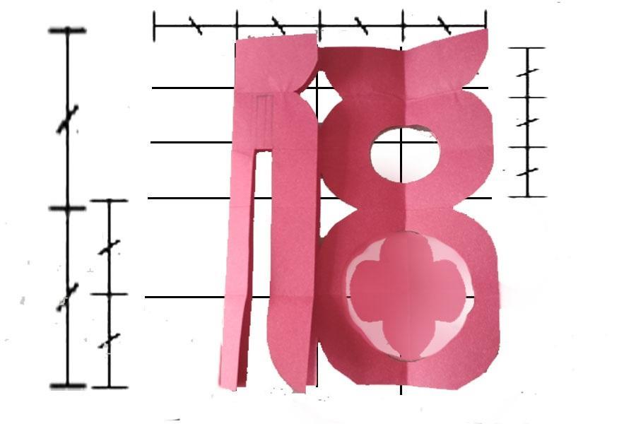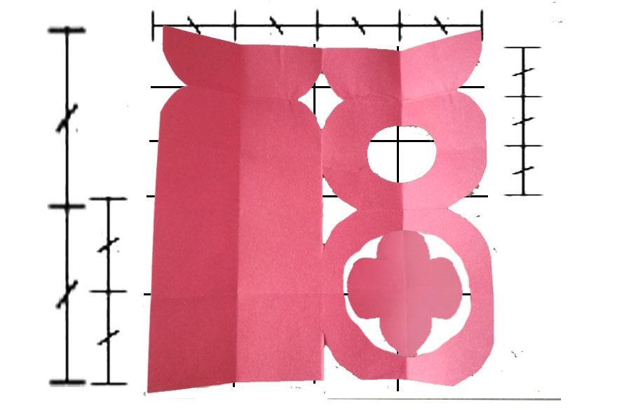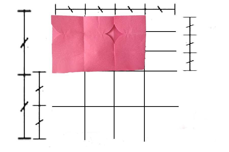 按照如图,剪掉一处圆角,一处半圆,一处空缺图案
