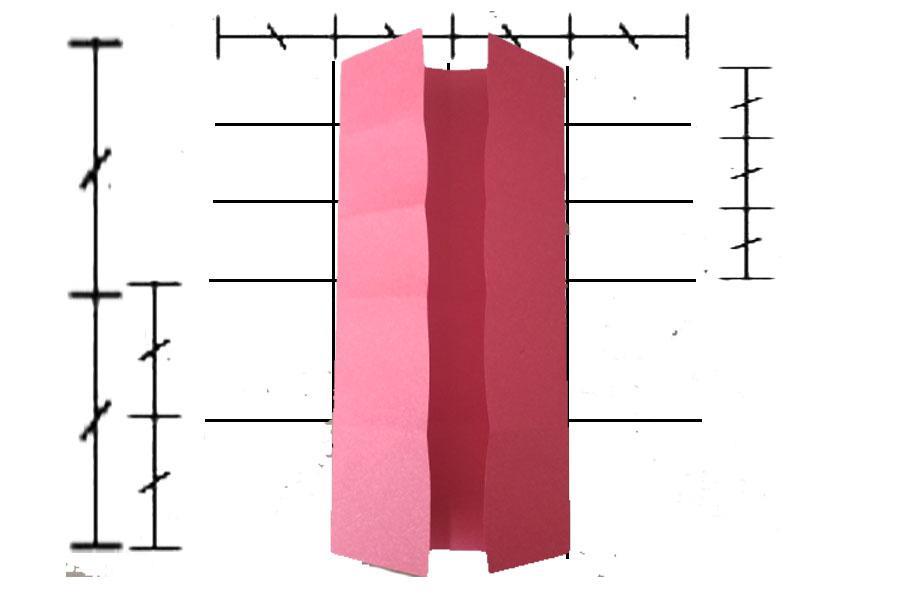 1,正方形纸,按照如图折纸符号,折出折痕(四等分,三等分,二等分)