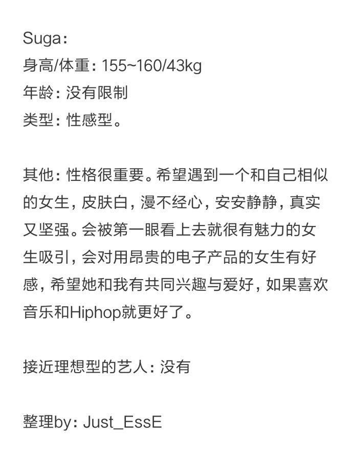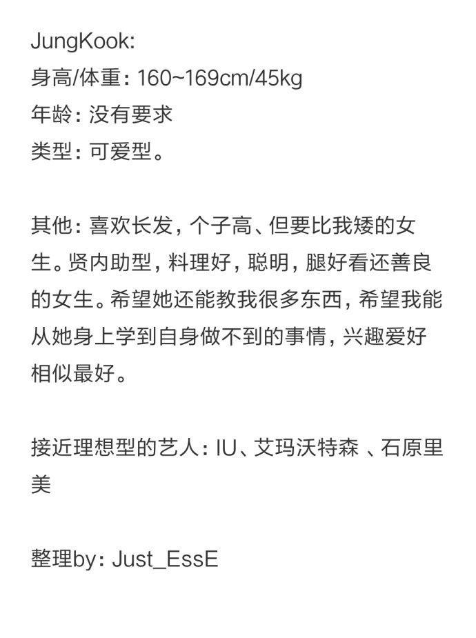 JungKook田柾国:忙内的理想型也是自始至终,对体重的要求也一直没变,一直要求45kg!