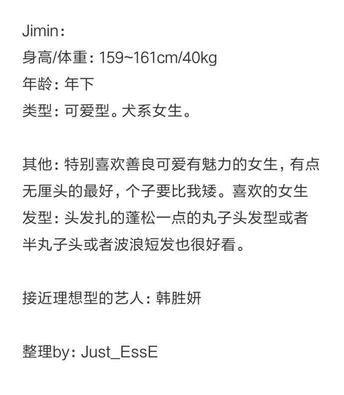 Jimin朴智旻:犬系女生?哇可爱善良,大家自行划重点哦!