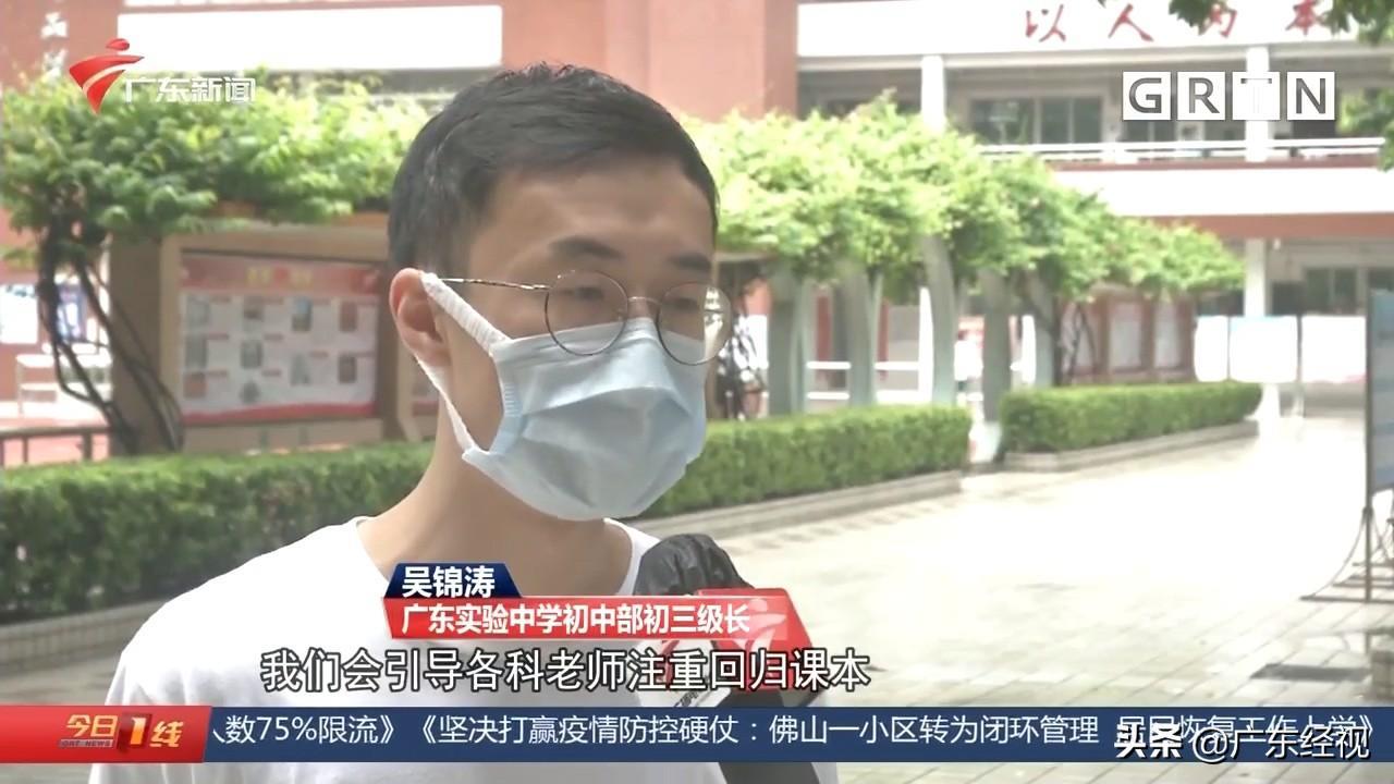 广东实验中学初中部初三级长:我们会引导各个科的老师要注重回归课本,我们在课堂上可能会要求精讲精炼,扎实基础。课后呢我们会控制这个量,然后同时也配合一些套卷的练习,保持学生手感。