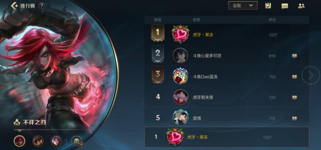 为了能够得到更多玩家的关注,果冻在第一时间内就体验上了英雄联盟手游,并且通过直播的方式出现在大家的面前,和其他MOBA游戏一样,大家都有自己相当拿手的绝活英雄,而果冻拿手的绝活英雄,正是卡特,并且位居到了国服第一卡特的位置。