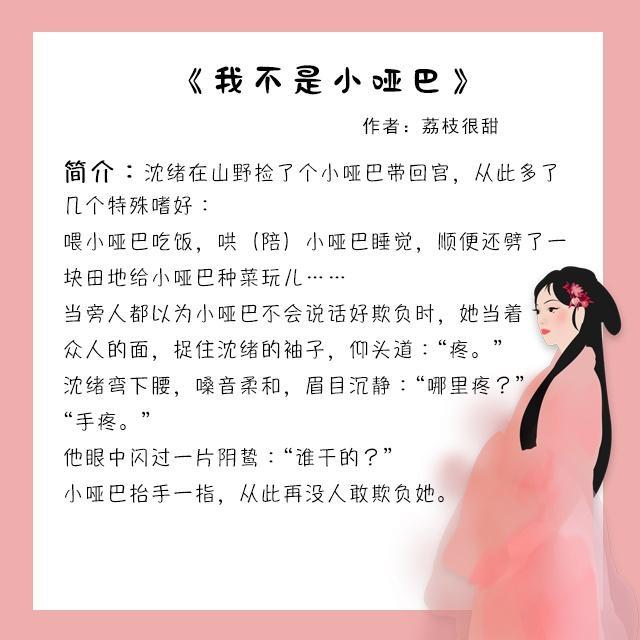 书评:女主一直生活在山里,就很纯真,应该是心理问题造成不会说话,开始男主还是太子被算计受了重伤,躲进山里就被女主救下来,这应该是女主第一次见除了师父以外的外人,就觉得有人陪她玩了很喜欢男主,之后被男主忽悠带下山,一起回了京城,女主真的超级萌,有种天然呆,但战斗力也很强了,精通医术,男主是占有欲极强的皇帝陛下啦,对女主真的是宝贝的不行,一点点委屈都不让女主受(当然拉他自己逗女主不算),但对其他人就很冷漠,可以说是杀人不眨眼,很冷血,不过作者描写下,整个文风还是偏软萌的啦,可撸可撸。