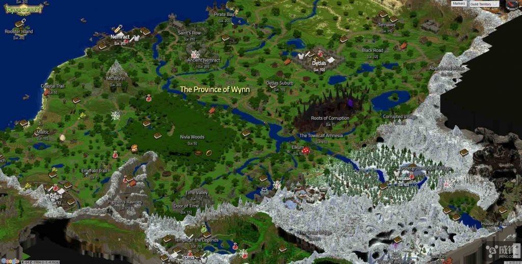 这款“新”网游的名称为《Wynncraft》,是由国外的一个专业团队开发而成,本作早在2013年便已经上线,而在随后的四年当中,游戏的开发团队也一直在为这部作品增加更多的元素,如今这款游戏已经拥有了一款MMO应该有的一切内容,从人物等级到角色装备,从工会联盟到世界BOSS,而这些所有的内容都发生在一张巨大的地图之上,这张地图的规模为4000×5500方块。都是由开发成员亲自建造并完成的。