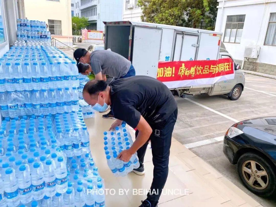 为支持抗疫工作,7月17日下午,北海阿叔联合爱心企业“康师傅饮品”送出400件饮用水,如数运至银滩镇政府,用实际行动为一线的抗疫工作者“加油”!