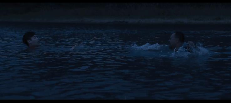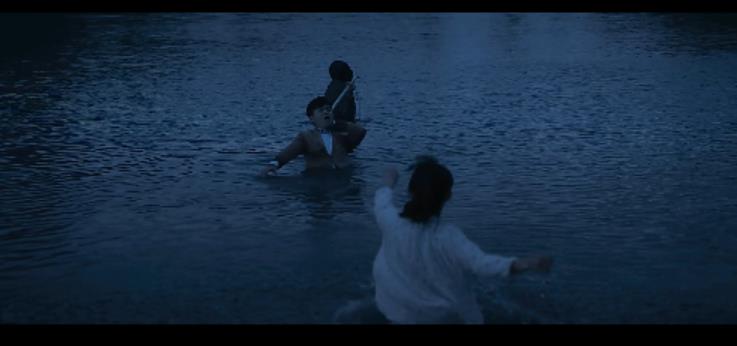 哥哥决定去追那个歹徒,女主人公怕哥哥受伤想阻止他,不料哥哥被歹徒抓住拖入水中。