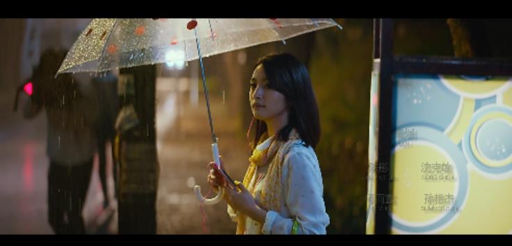 故事开场大雨倾盆,女主人公在雨中听着音乐等待家人!