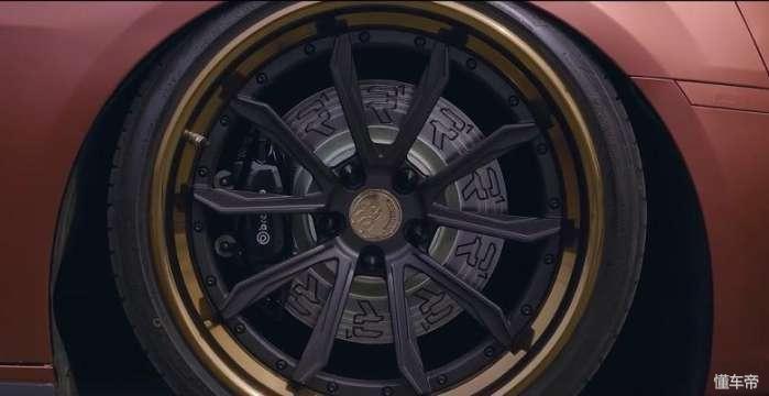 车毂的金色搭配黑色也非常好看,没有纯金色的显眼,或者纯黑色的帅气,给人一种非常特别的感觉。刹车碟的图案就像给刹车碟纹身一样,配合黑色的刹车非常符合这辆车的改装风格。