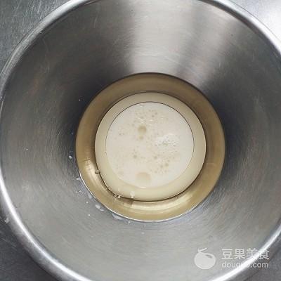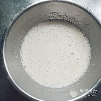 13、倒入温热的豆浆,搅拌均匀后,过筛倒入奶锅。