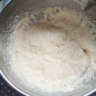 15、淡奶油中加入盐打发,再加入豆乳卡士达奶油,再次搅打均匀。
