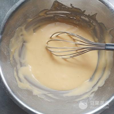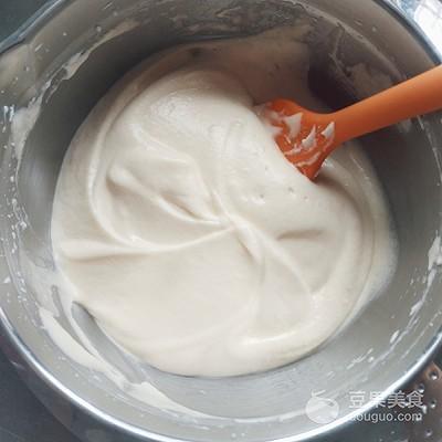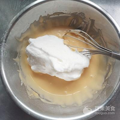 7、取1/3蛋白霜加入蛋黄糊中,拌匀。