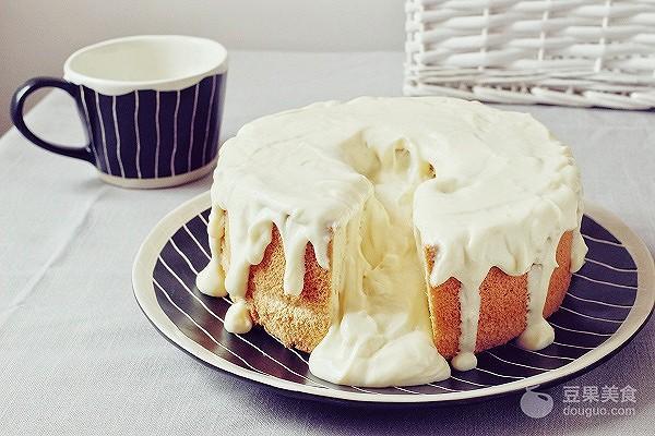 16、将豆乳装入裱花袋中,在蛋糕上一圈圈挤满,豆乳奶油会自然流下呈滴落状。