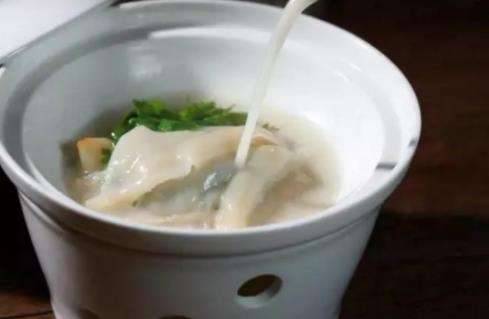 第四道菜是堂灼鱼汤贵妃贝。拣择干净的盛入白瓷小炖蛊,晃一勺包裹、浸润了鲫鱼精华的奶白色高汤,不同口感层次递进,肉质脆甜,这种丰富且柔软的味道总是让人迷恋,像是仲夏夜之恋。这道菜不仅美味,而且十分具有浪漫气息,可以说是小情侣约会必点菜单。
