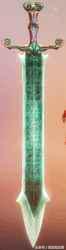:“昆吾山,其下多赤金,色如火。昔黄帝伐蚩尤,陈兵于此地,掘深百丈,犹未及泉,惟见火光如星。地中多丹,炼石为铜,铜色青而利,泉色赤,山草木皆剑利,土亦钢而精。至越王勾践,使工人白马白牛祠昆吾之神,采金铸之,以成八剑之精。一名“掩日”,以之指日则光昼暗。金,阴也,阴盛则阳灭。二名“断水”,以之划水,开即不合。三名“转魄”,以之指月,蟾兔为之倒转。四名“悬翦”,飞鸟游过,触其刃如斩截焉。五名“惊鲵”,以之泛海,鲸鲵为之深入。六名“灭魂”,挟之夜行,不逢魑魅。七名“却邪”,有妖魅者见之则伏。八名“真刚”,以切玉断金,如削土木矣。以应八方之气铸也。”
