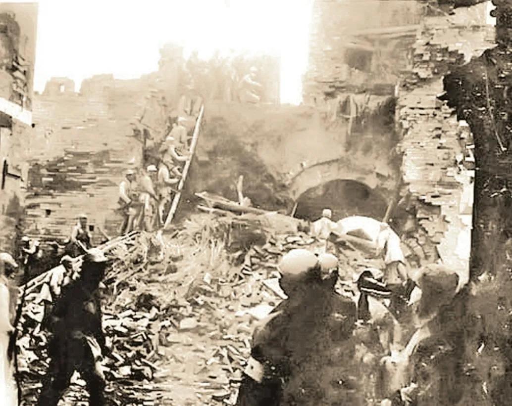 打掉楼房之敌后,张英才立即带领部队顺街冲进去,占领了几座院落,向街东高楼之敌展开攻击。