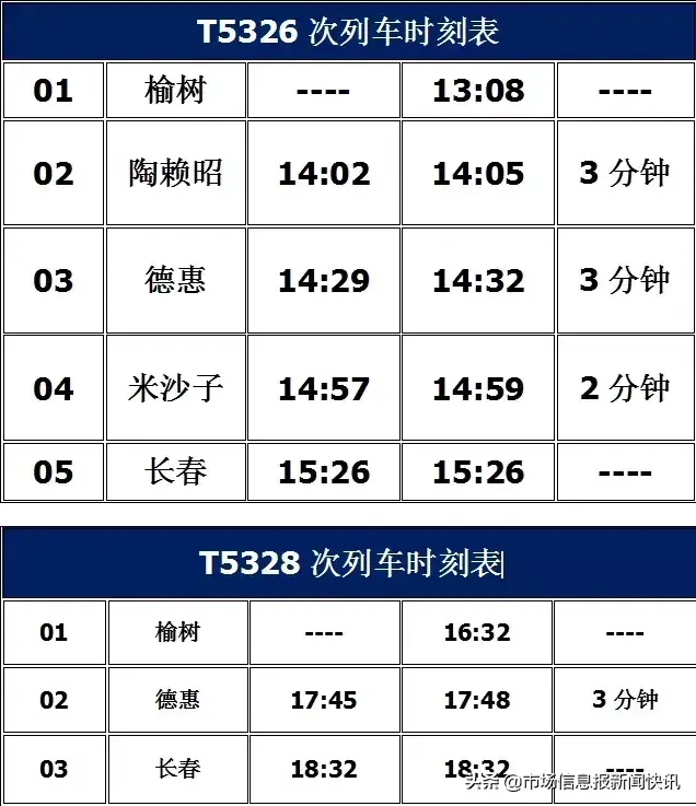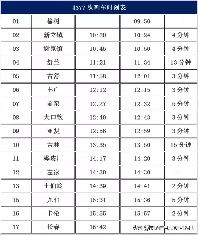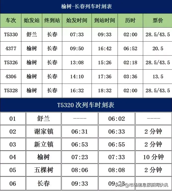 榆树到长春票价及时刻表