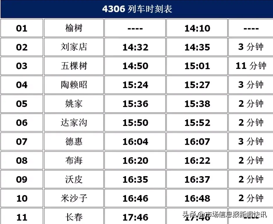 榆树到长春的火车