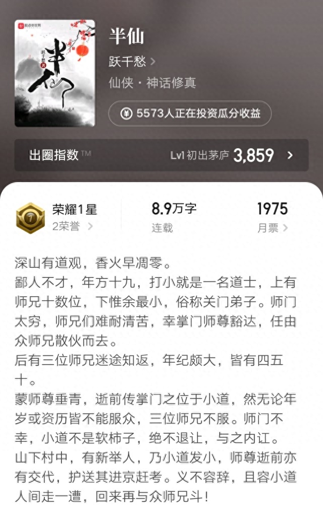 起点推出的这个投资模块,可以看出一本新书上线的时候,读者对于它的期待感能有多高。