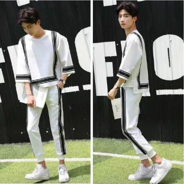 如果是不怎么懂服装搭配的男士们可选择一些好看的套装,这样就不会担心自己搭配不好啦~白色加黑边的休闲套装,看起来很有韩版服装的特点,非常适合男士穿着,有种韩国欧巴的赶脚。在秋季天气比较凉爽,穿上这些套装就能起到保暖作用啦~