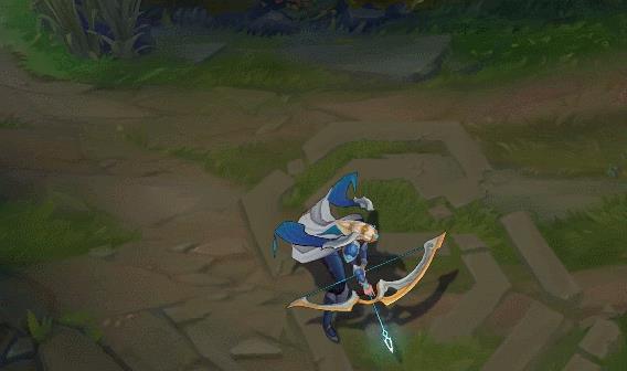 大招的水晶箭和W技能的色调相似,但更为巨大。箭羽旋转发射,如同一颗流星,而在接触到目标后会四散绽开,十分壮观。