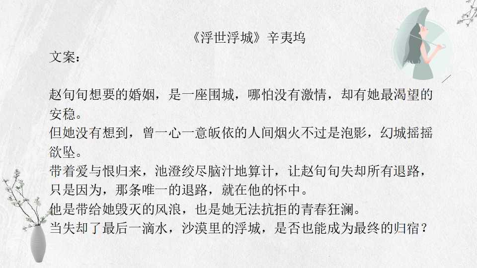 十一、《浮世浮城》辛夷坞 BG 完结