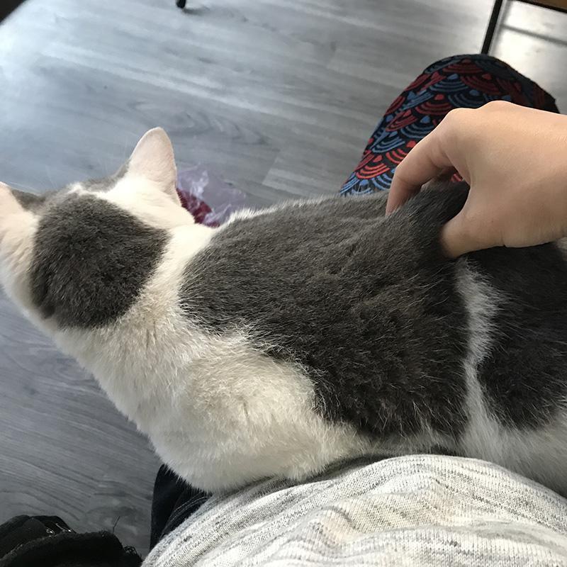 首先我们要先给猫的背部进行按摩提拉,左右扭动一下。因为背部的皮比较多,肉比较少。这样子能够有效的让皮肉黏合程度高一点。吃起来不会脱离。感觉我们家英短背上的皮拉起来都能赶上小编人高了。