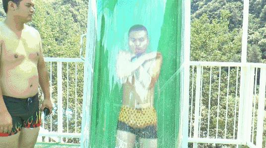 180°变转下滑至漏斗滑入水中