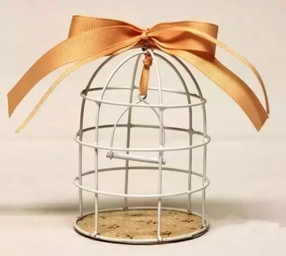 再用粗铁丝和竹签制作出鸟儿的站架,在鸟笼下面用细铁丝固定一个带图案圆形卡纸作为鸟笼的底部,在鸟笼顶端系上一条精美的丝带,一个亲手制作的小鸟笼装饰品就闪亮登场了。最后不要忘记喷上白色的漆哦。