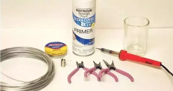 粗细两种铁丝、尖嘴钳、卡纸、丝带、竹签、喷漆、玻璃杯。