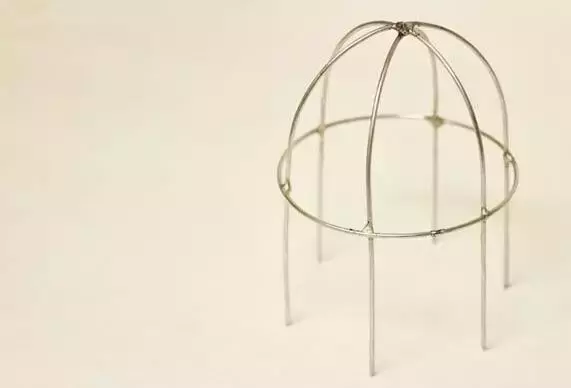 利用玻璃杯将粗铁丝绕出4个圆圈,3个弯型铁丝框架,再按照格尺标注的尺寸,制作出小鸟的站架,把这些东西组装起来,用电焊把连接处焊接牢固,一个小型的鸟笼就初具模型了。