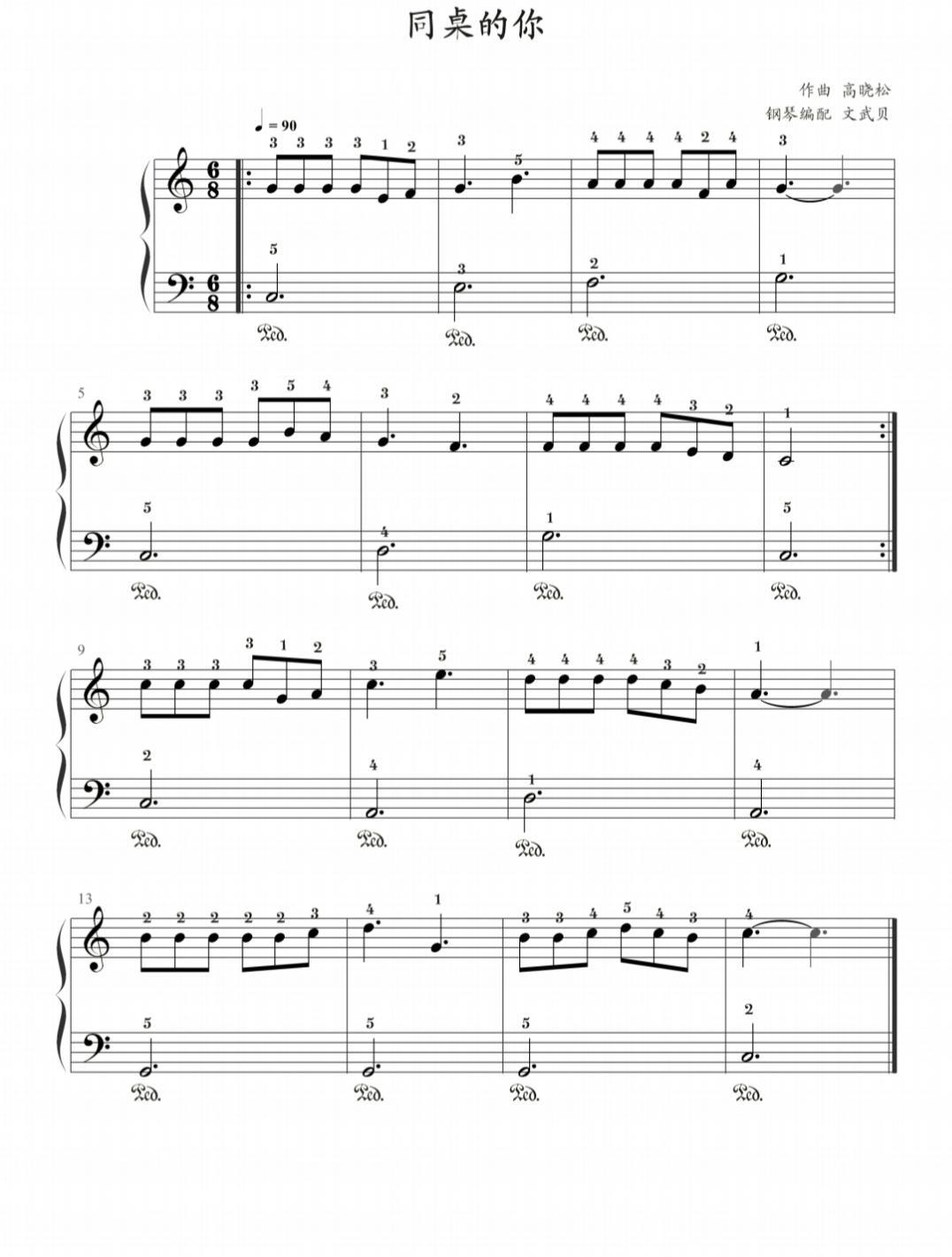 同桌的你,钢琴谱、简谱、简单版,老狼,曲谱分享