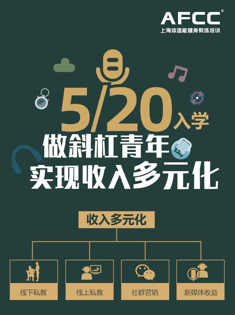 上海体适能健身教练培训基地是健身教练职业技能培训签约合作单位,中医药适宜技术职业化培训基地。可以在基地考取健身教练证,而且目前报名参加上海体适能5月20日开班的学员即可享受优惠,限额30名,还有尊享私人定制服务,还推出了新媒体营销课程,让你收入体系改变,实现线下和线上同时收入,让你知识变现,赶快来报名学习吧。