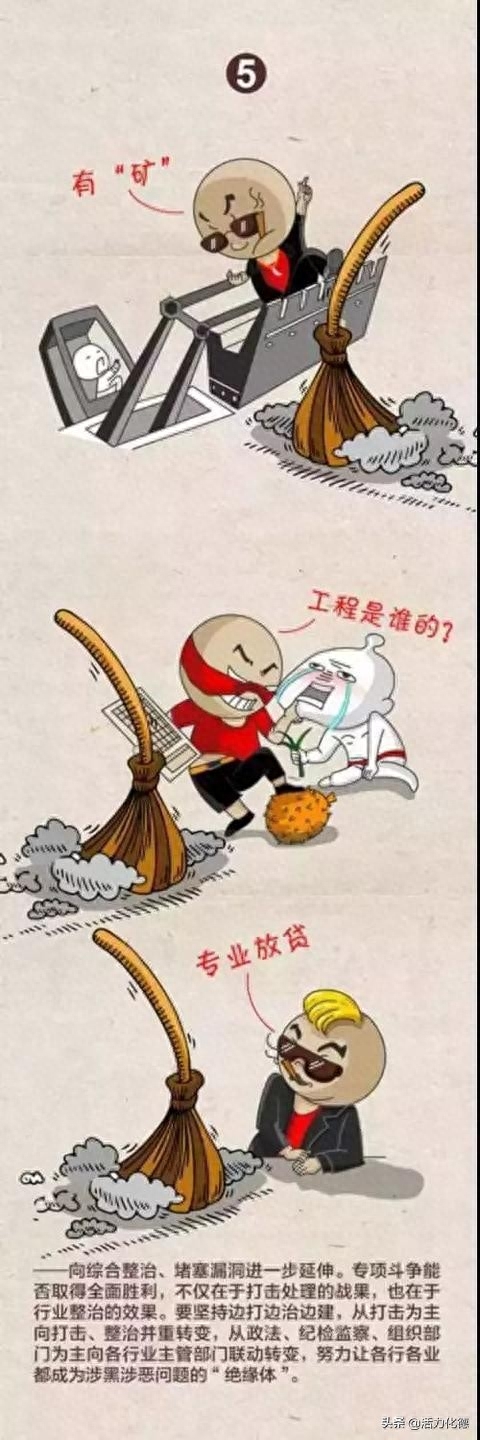 中央纪委国家监委网站近日发布一组题为《2019扫黑除恶“六个延伸”》的漫画,对2019年扫黑除恶专项斗争提出向侦破大案、打财断血进一步延伸,向网络空间、新兴领域进一步延伸,向深挖幕后、打伞破网进一步延伸,向依法惩治、快诉快判进一步延伸,向综合整治、堵塞漏洞进一步延伸,向固本强基、铲除土壤进一步延伸等六大方向。