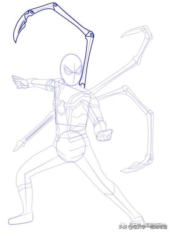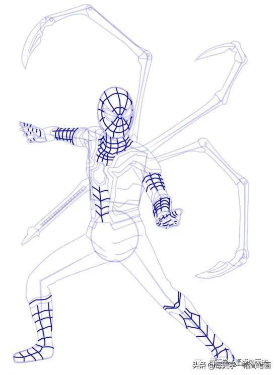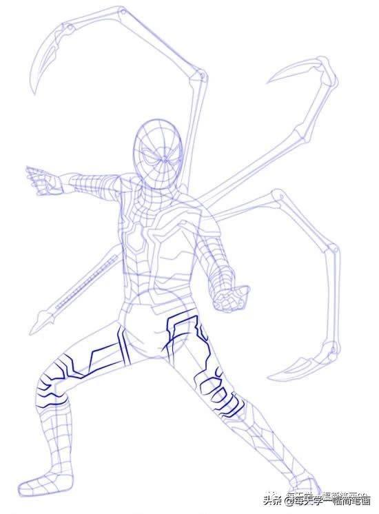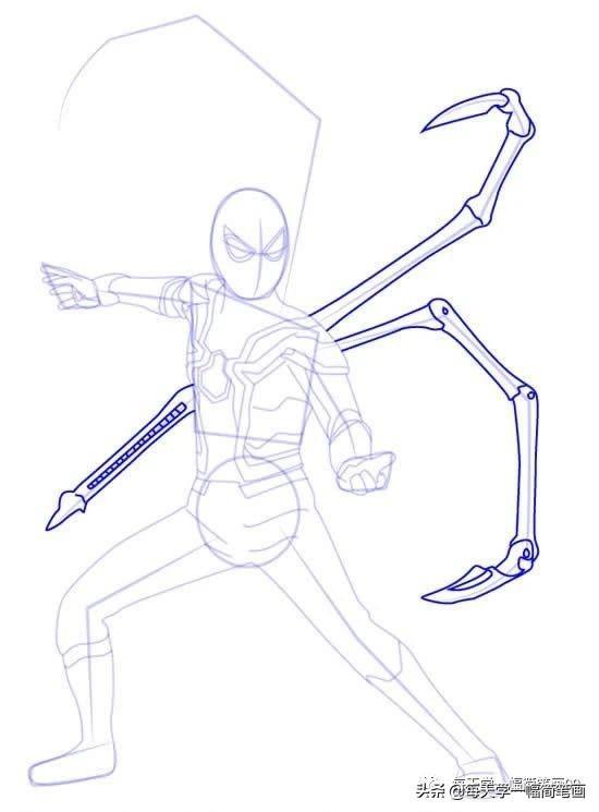 在漫威电影里,神奇的蜘蛛侠穿上了钢铁侠为他专门设计的战甲,看上去帅呆啦!简笔画穿着新战甲的超帅蜘蛛侠的画法,虽然很有难度,但真的值得我们努力画画看哟!