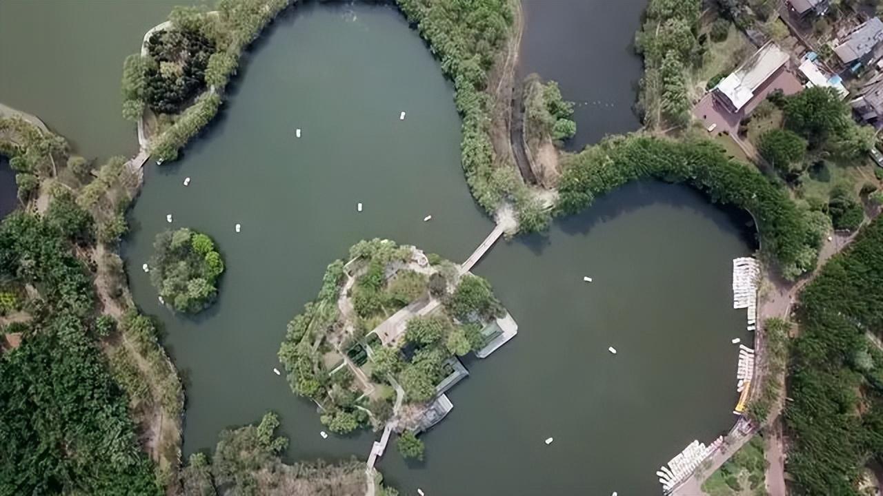 山景区与东山景区相连接,水景区由五个大小不同的人工湖组成,可以划船、游泳,湖岸有映碧楼、环翠阁、怡莲桥等亭榭、长廊,山水相映、柳暗花明;山景区主要为东部山区,区内植被繁茂、道路蜿蜒,有10余个赏景亭。登山远眺,钢城全貌尽收眼底。