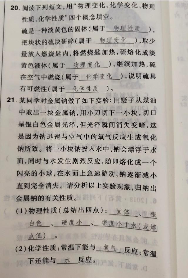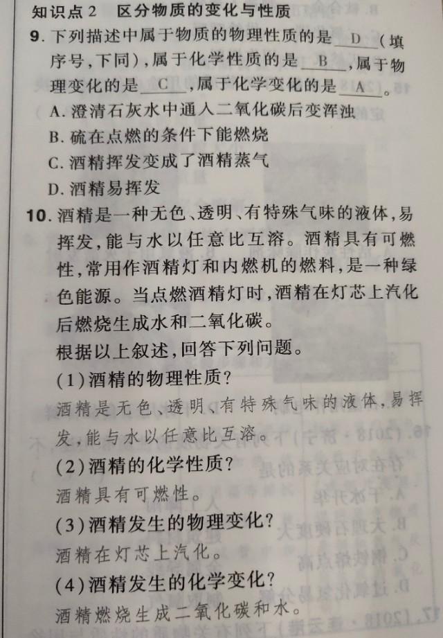 九年级化学一定要掌握的,物质性质与物质变化的区别