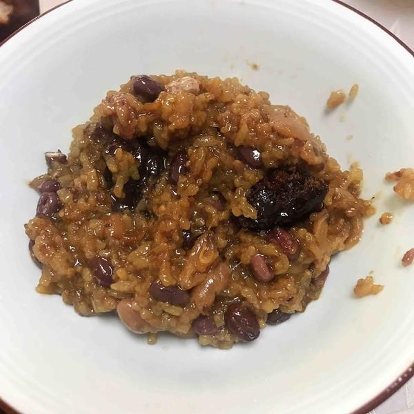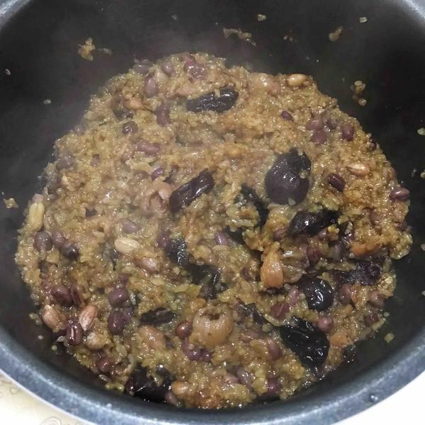 糯米 两碗、阿胶枣 适量、花生 适量、红豆 适量、桂圆肉 适量、红糖 适量、冰糖 适量