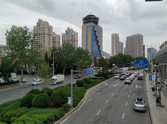 站在辽河西路上的过街天桥,大连开发区的城市节奏!