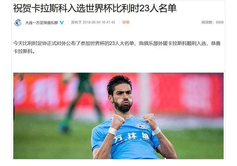 为何称比利时欧洲红魔?大连一方祝贺卡拉斯科入选世界杯大名单