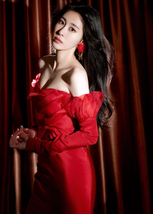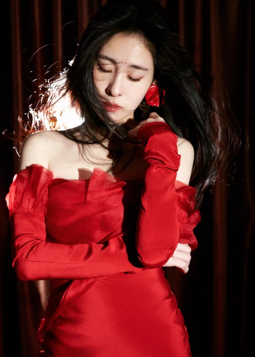 张碧晨写真,一袭抹胸红裙,身姿曼妙,性感迷人