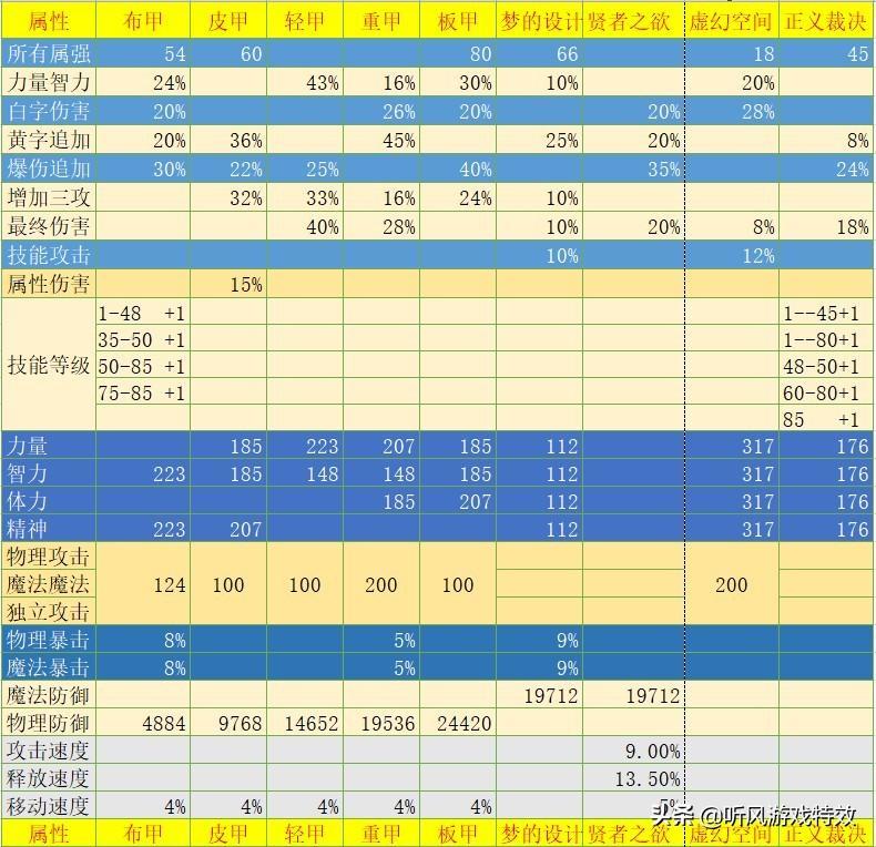 95哈林防具首饰特殊装备属性整合图,直观明了你值得拥有