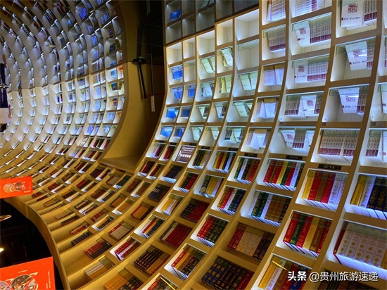 钟书阁位于贵阳市观山湖区云上方舟4楼,整个书店以贵州特有的自然风光为灵感和创造力而打造,整体设计风格融入了贵州的景色,以山、水、洞、林、石交相辉映,给人带来前所未有的视觉冲击和震撼,特别是拍照打卡的好去处。这里倒垂的图书、迂回的曲线设计,在黑色玻璃的映衬之下,整个线条感特别美,奇特的书架与颜色各异的图书,可以完美呈现出一种拍照的触动,来了,就会心动。